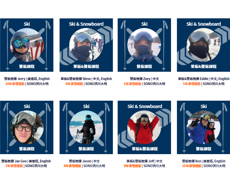 · 一位滑雪指導員最多對15~17位學員。