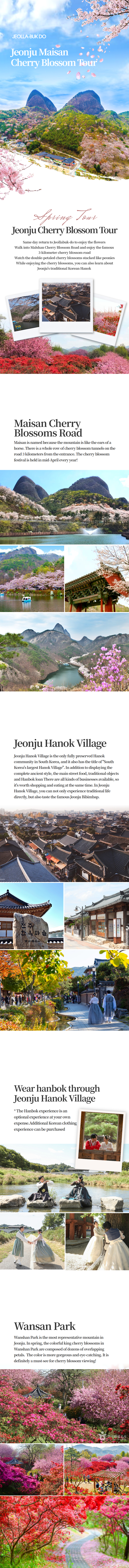 Watch the double-petaled cherry blossoms stacked like peonies While enjoying the cherry blossoms, you can also learn about Jeonju's traditional Korean Hanok
