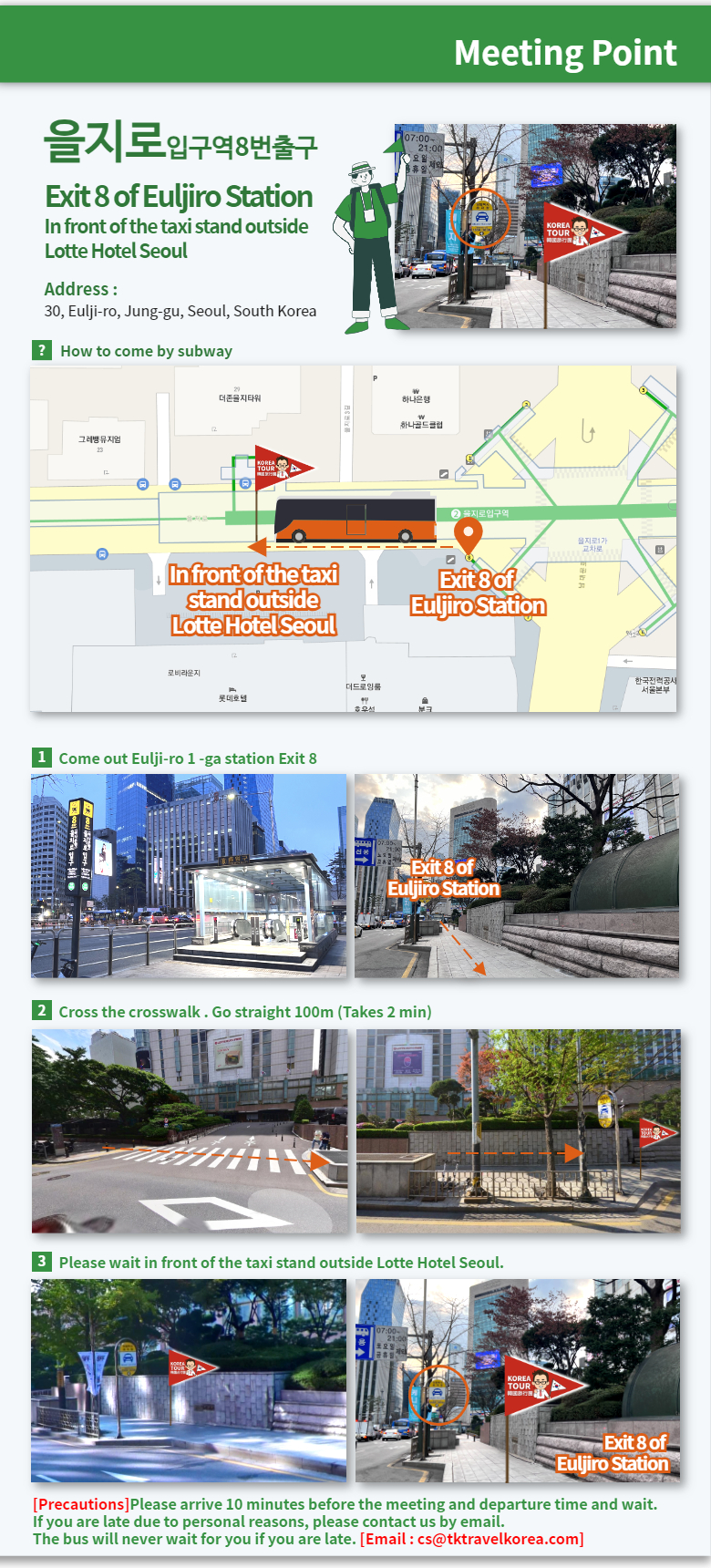 · The day before departure, the license plate number and contact information of the guide will be sent by SMS or SNS.